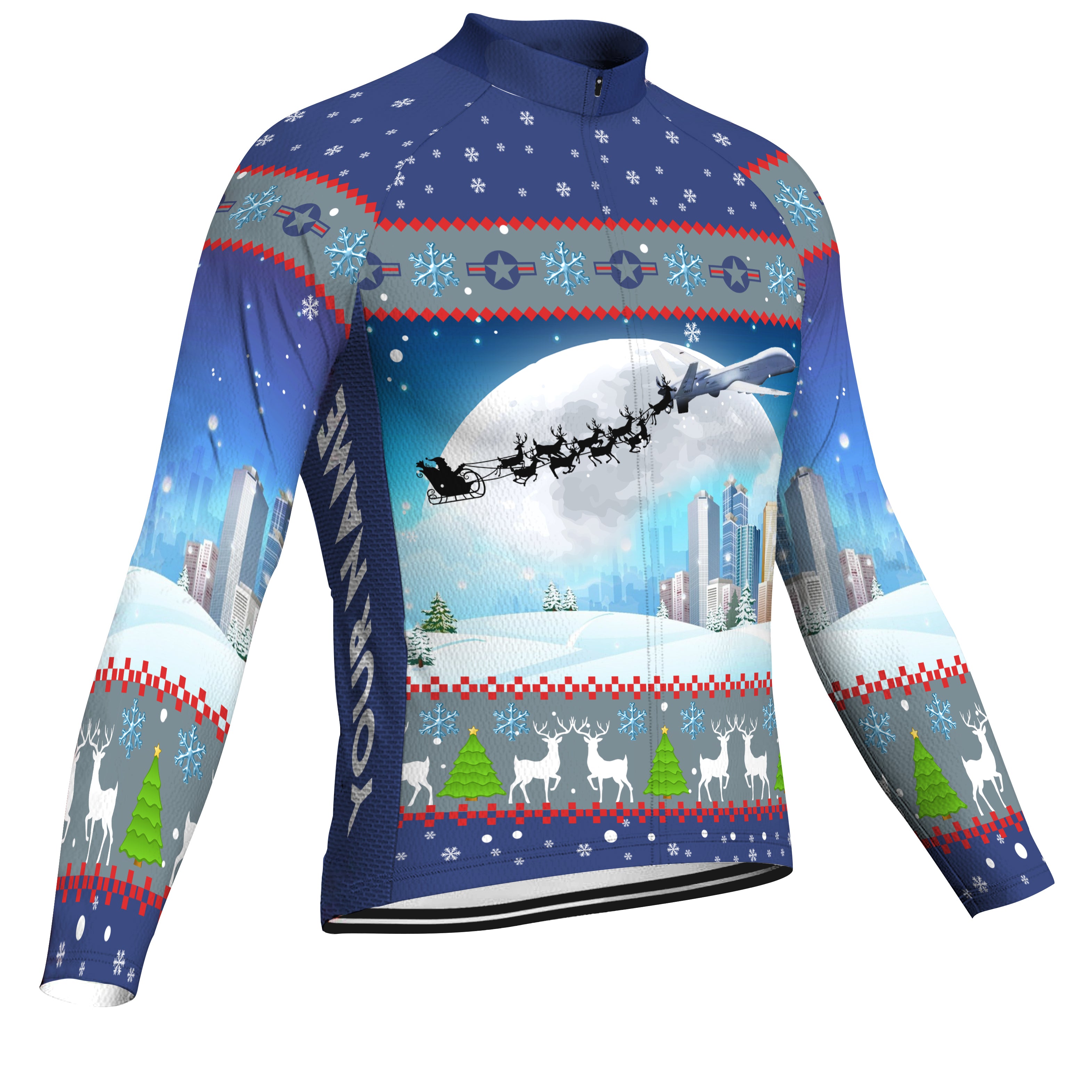 • Customized General Atomics MQ-9 Reaper Santa's Sleigh Christmas Winter Thermal Fleece Cycling Jersey For Men